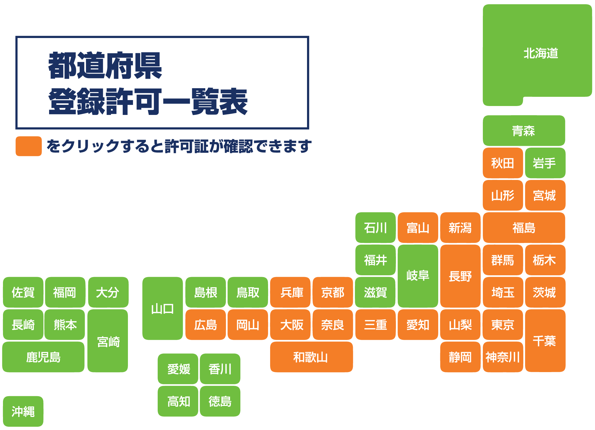 | 都道府県 | 許可番号 | 有効期限 | 優良認定 |